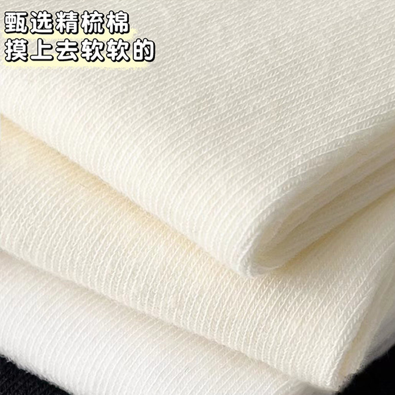 白色堆堆袜子女夏薄款纯棉防臭中筒袜无骨月子袜夏天长袜配小皮鞋