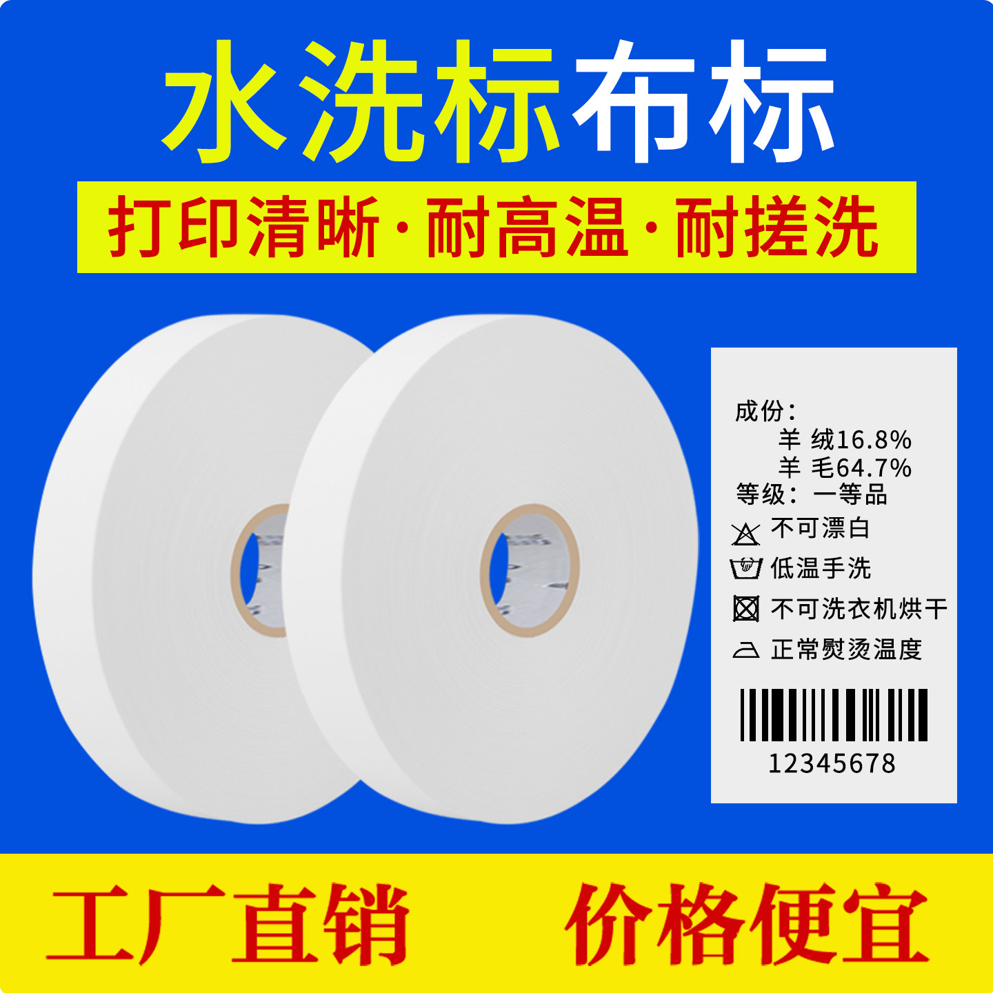 空白打印洗水标定制缎带丝带绸带服装洗水唛布标洗涤布商标窗帘女装尺码唛头领标衣服水洗唛干洗店条码标签纸