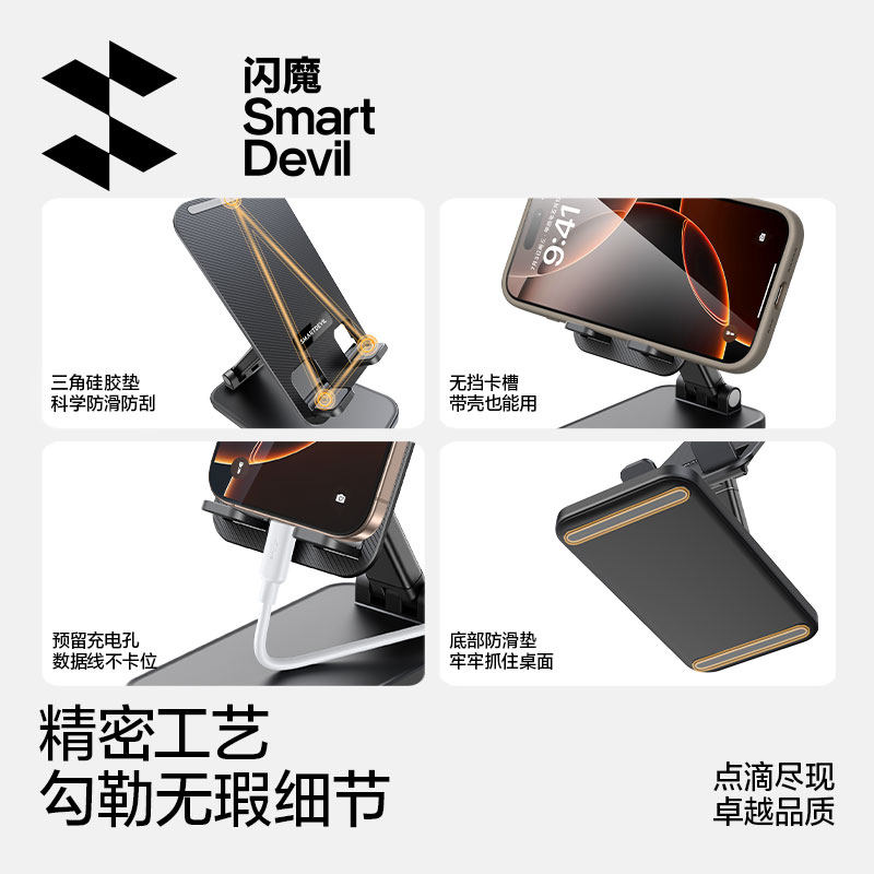 闪魔手机支架懒人桌面铝合金支撑架平板直播pad通网课便携折叠式
