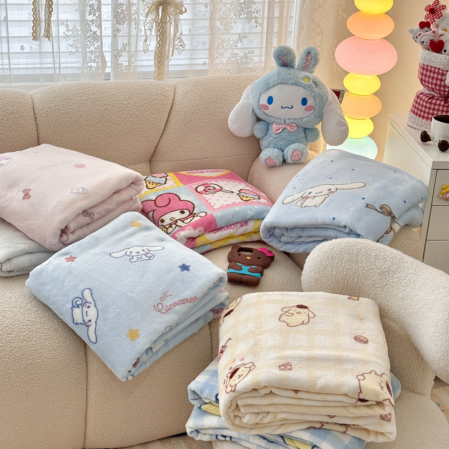 ins可爱牛奶绒双面绒毛毯四季盖毯kt猫少女风办公室午休毯空调毯