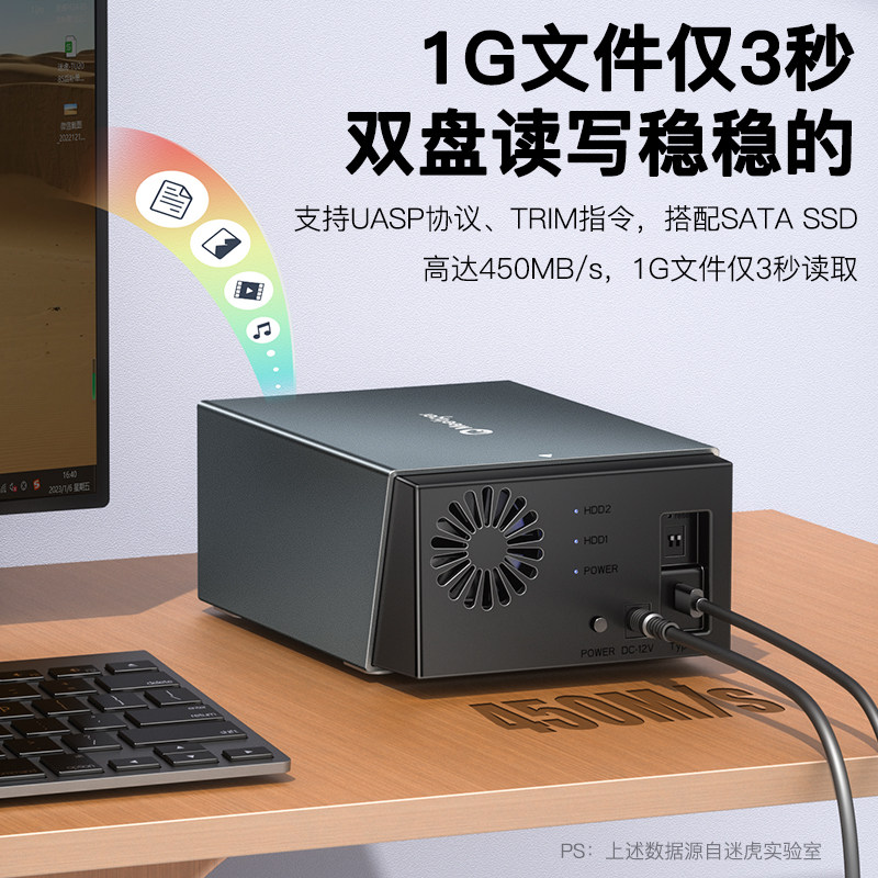 迷虎硬盘阵列柜双盘位RAID磁盘盒子外接3.5/2.5寸机械SATA储存器
