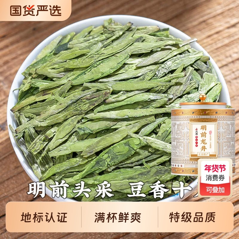 特级龙井茶绿茶明前新茶官方正品头采嫩芽浓香型茶叶自己喝礼盒装