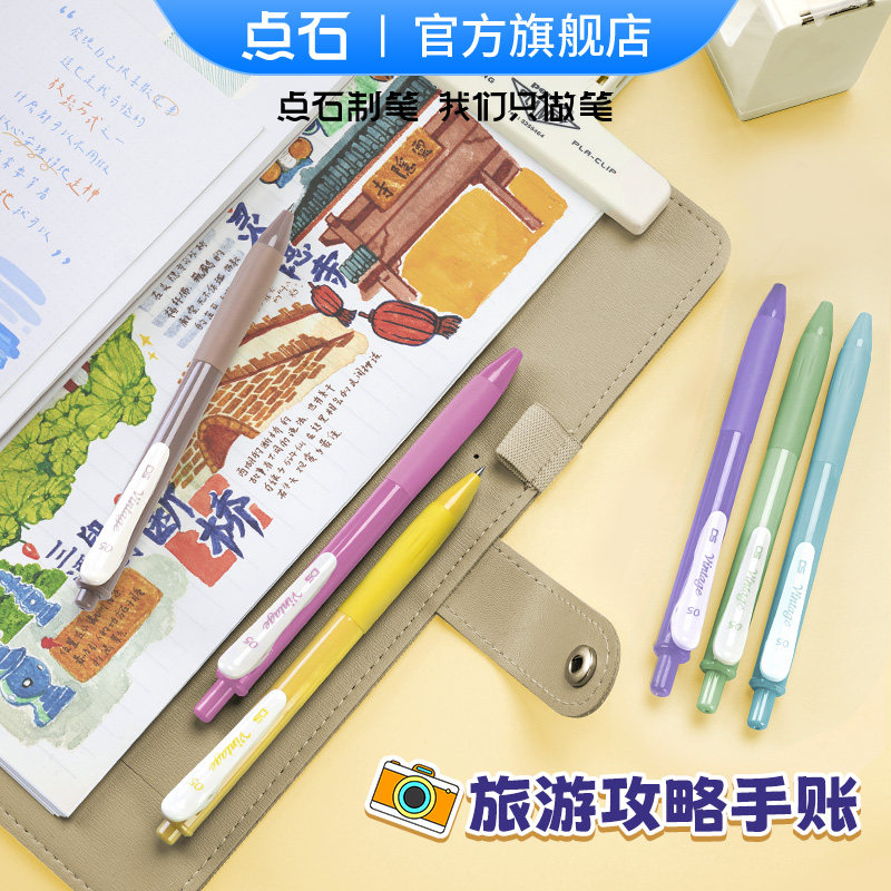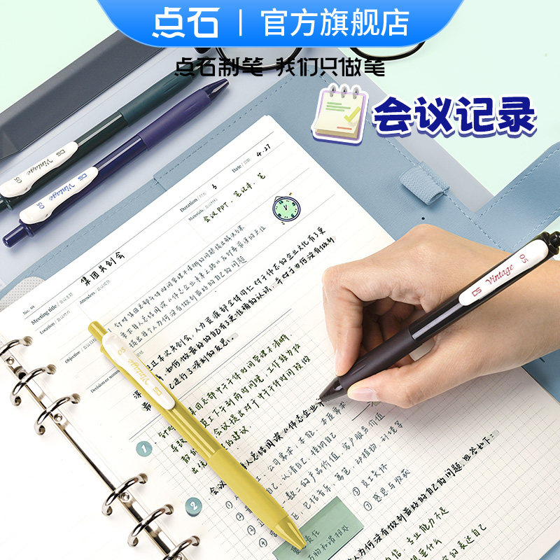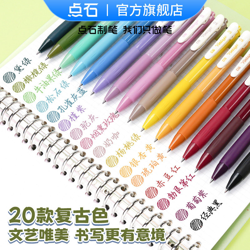 点石制笔复古色彩色中性笔0.5速干墨手帐笔记开学必备文具办公手账老师练字笔子弹头创意签字大容量旗舰店099
