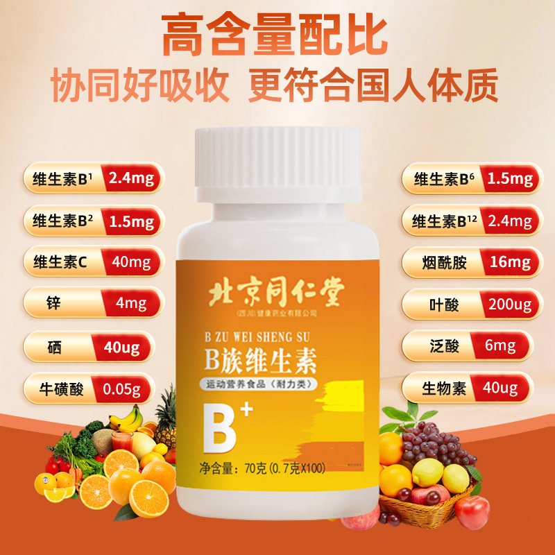 北京同仁堂维生素b族多种复合片男女士儿童专用正品官方旗舰店