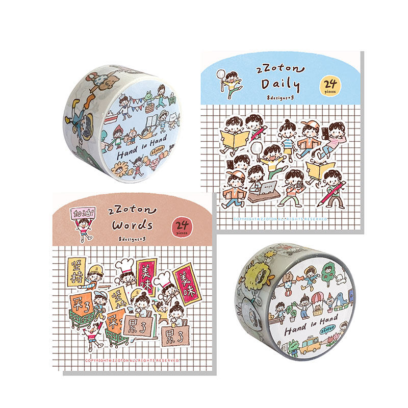 卓大王【潦草风系列胶带贴纸】铅笔小人手拉手和纸pet胶带贴纸包