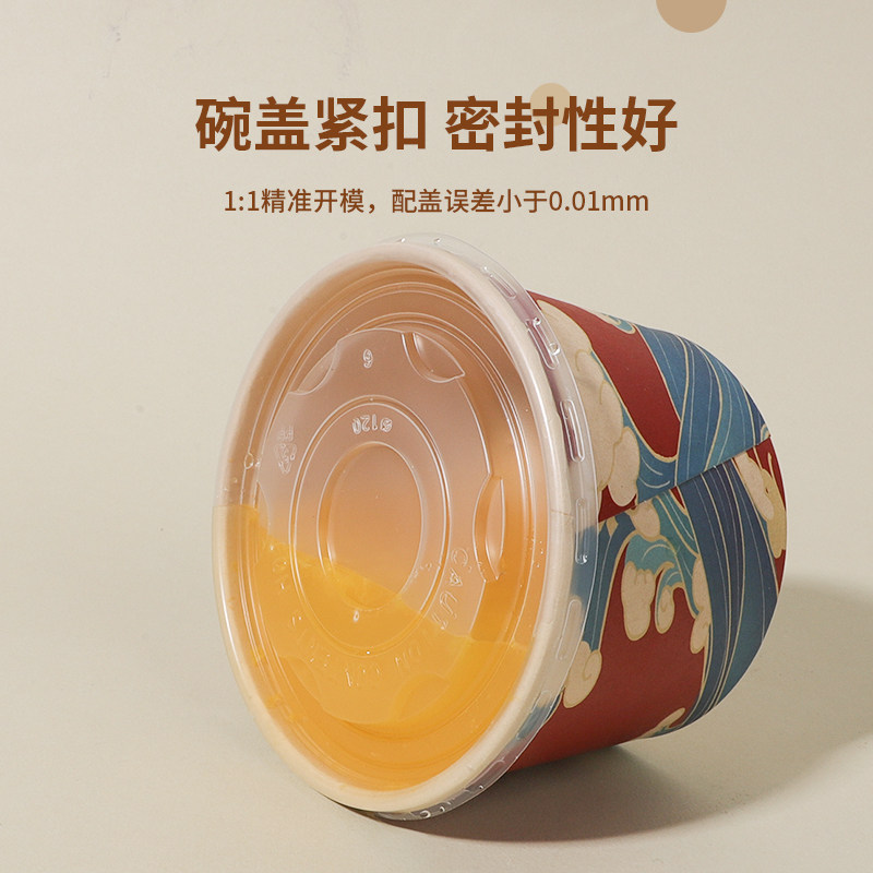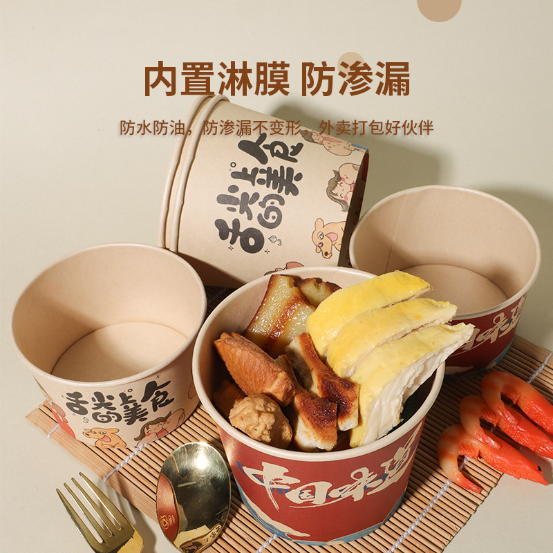 程圆商用一次性纸碗加厚圆形外卖小吃打包餐具饭盒带盖餐盒汤碗
