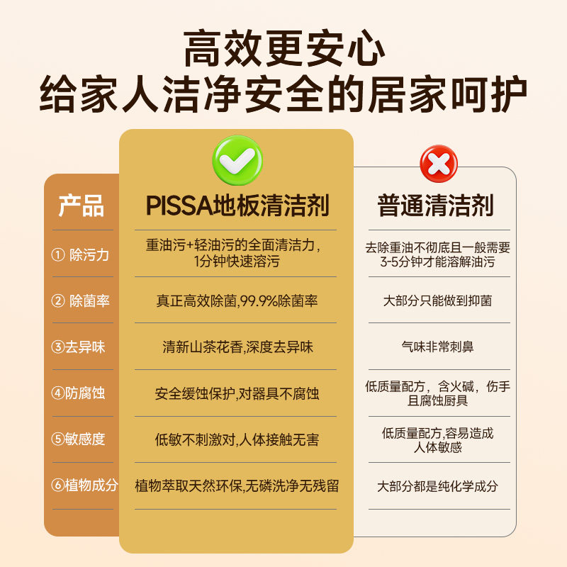 水卫士地板清洁剂母婴宠家庭适用拖地地板瓷砖扫地机去污速干除菌