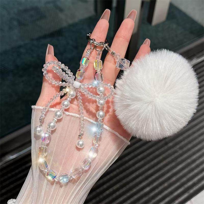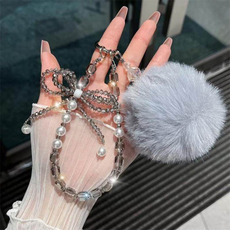 高颜值水晶蝴蝶结毛球珠手机挂链ins腕带包包挂饰结实防掉装饰品
