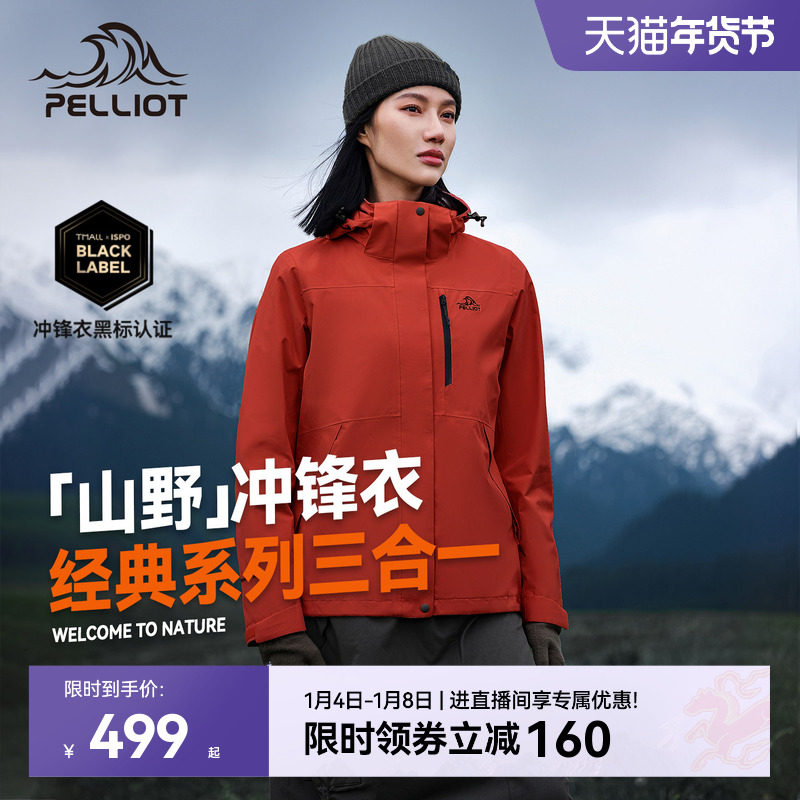 【经典2.0】伯希和户外加绒冲锋衣男冬季三合一防风登山服外套女