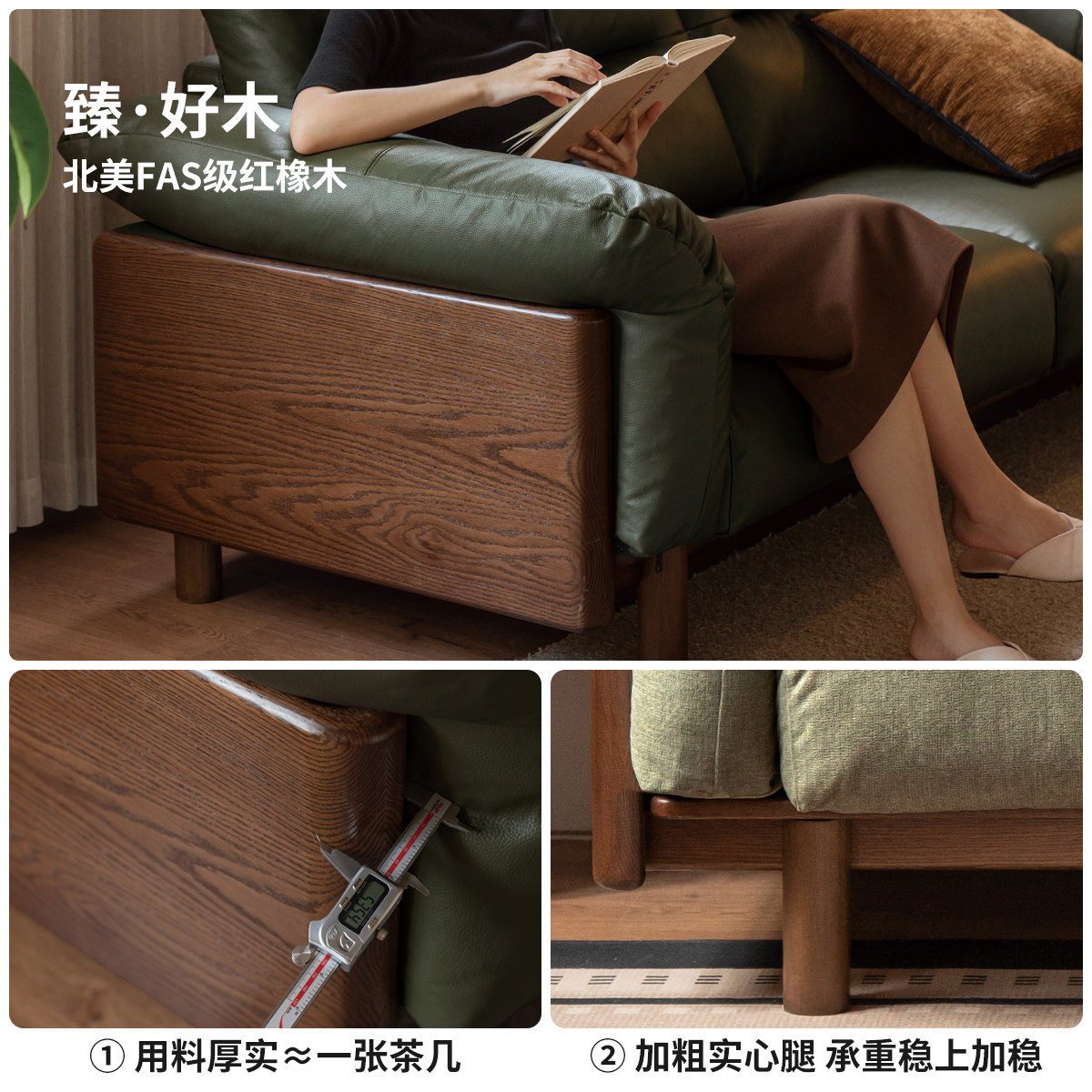 源氏木语实木沙发客厅现代简约小户型真皮沙发家用橡木胡桃色沙发