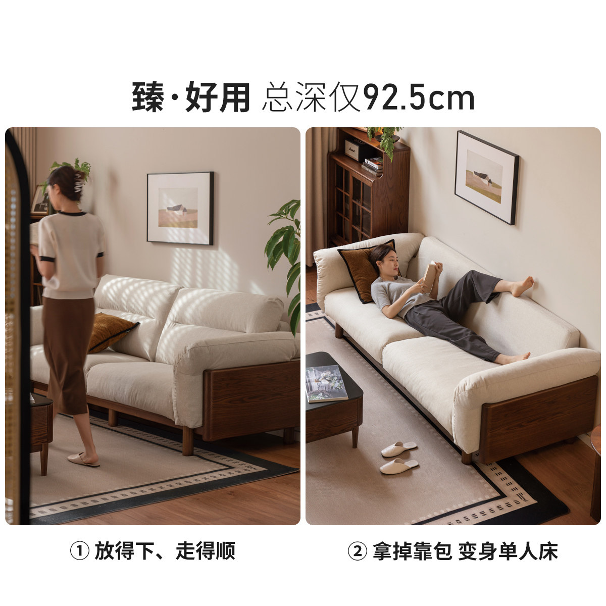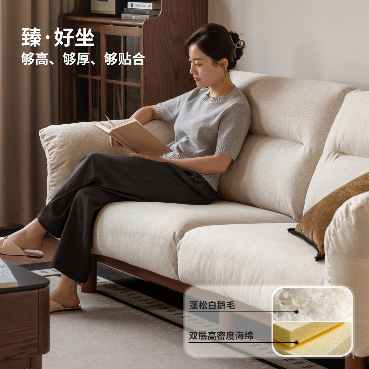 源氏木语实木沙发现代简约高靠背布艺沙发客厅小户型橡木直排沙发