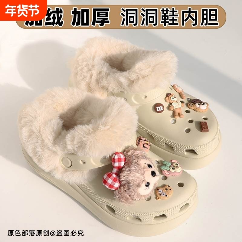 洞洞鞋毛绒棉内胆适配crocs卡骆驰加绒冬天云朵秋泡芙冬季鞋花
