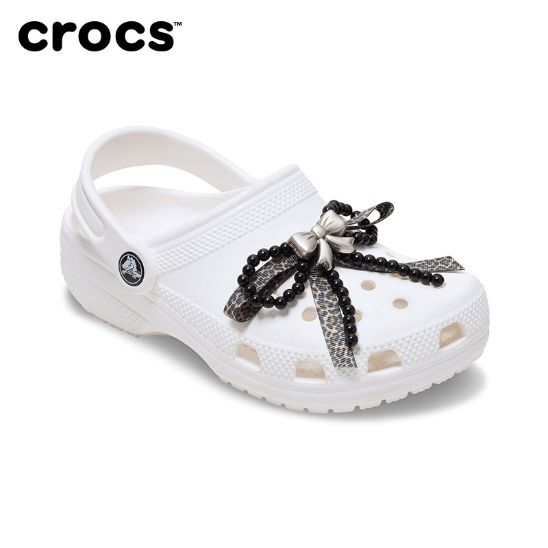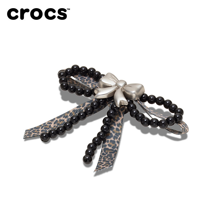 白鹿同款Crocs卡骆驰智必星配件洞洞鞋花 银色豹纹蝴蝶结