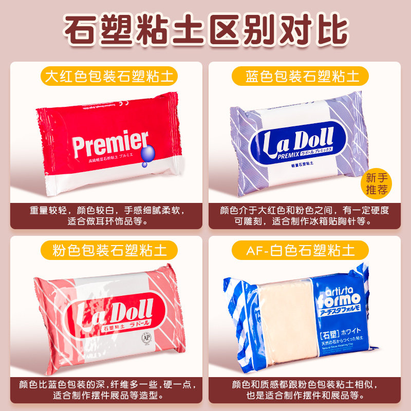 日本帕蒂格ladoll石塑粘土diy材料包套装帕蒂格蓝包蓝色粉包制作手办手工免烧免烤风干陶泥石粉泥塑BJD黏土