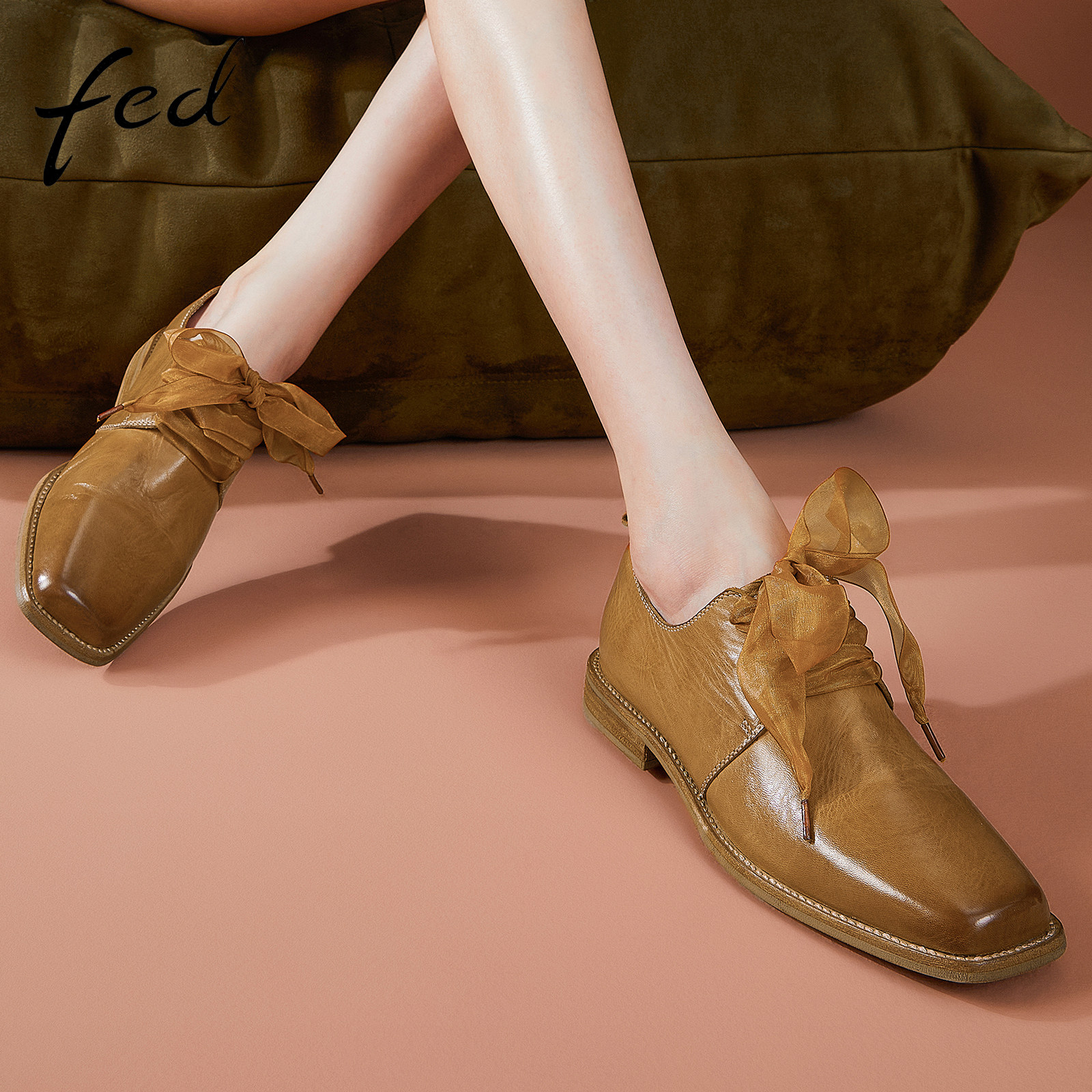 【水洗马皮】fed英伦风小皮鞋秋季新款女鞋丝带单鞋D0813-ZFA091