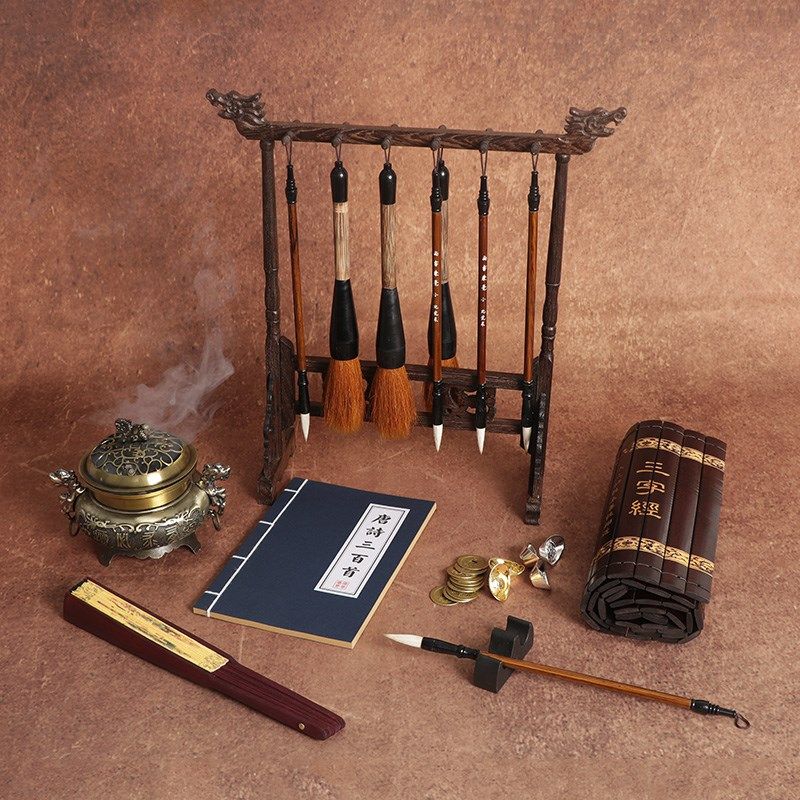 儿童竹简古装汉服摄影道具影楼婚纱照创意写真拍照仿古毛笔架摆件