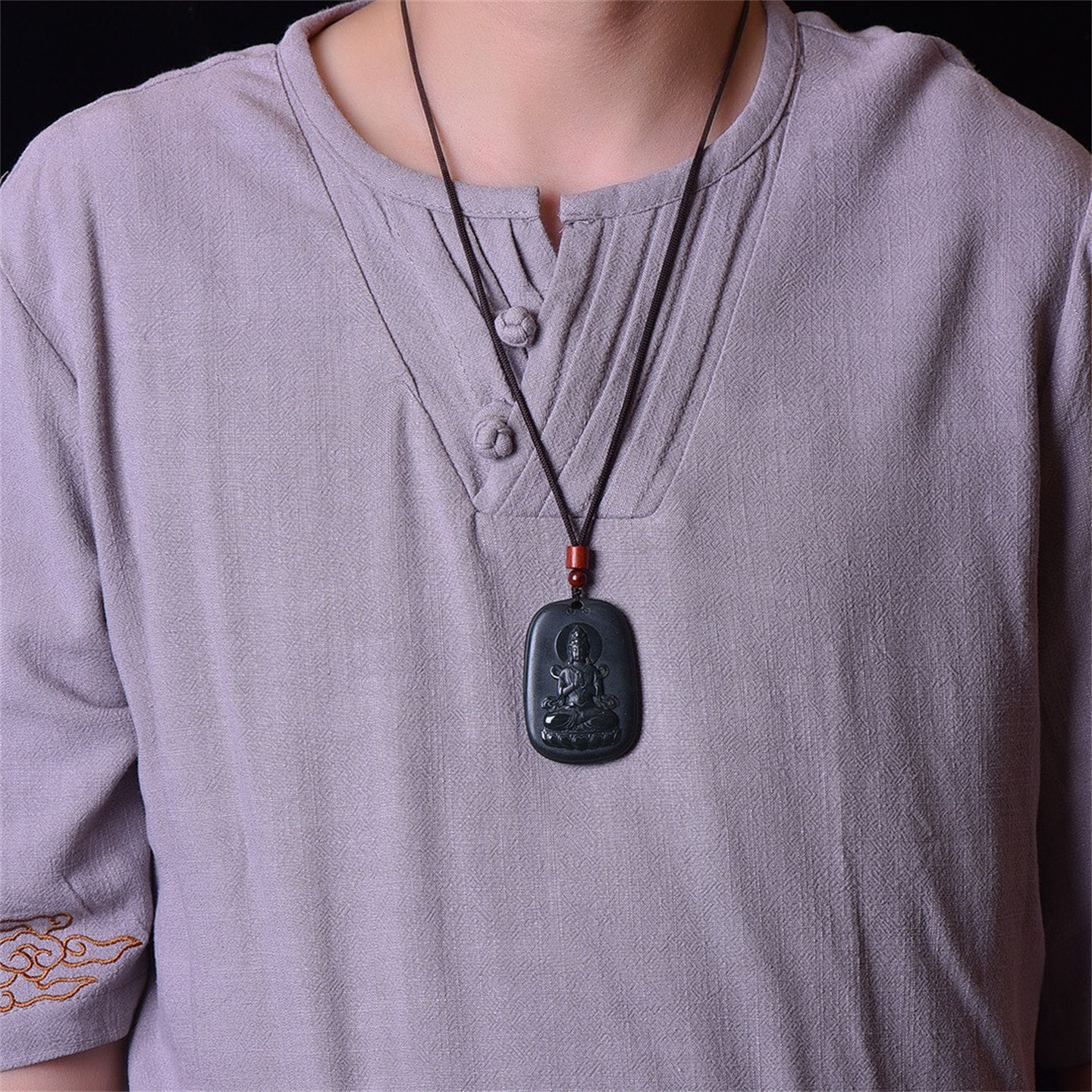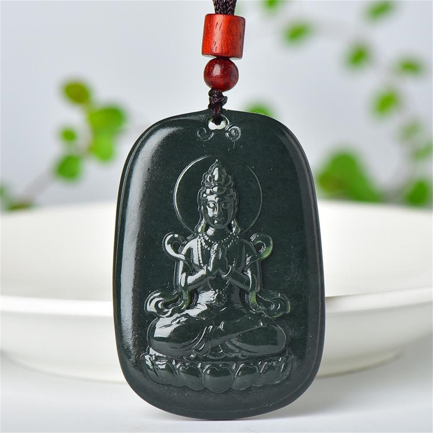 送证书天然新疆和田玉青玉挂件南海观音菩萨玉石吊坠男款玉佩8980