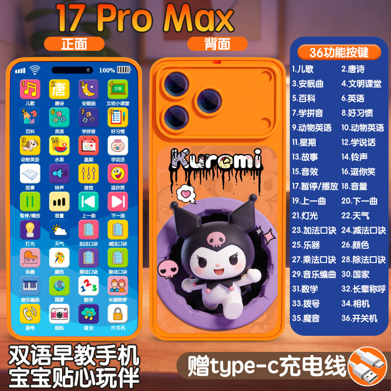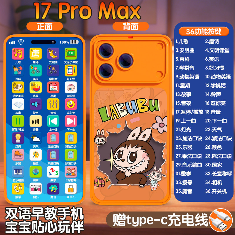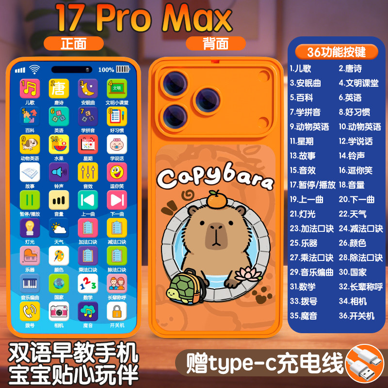 新款17ProMax水果星宇橙色儿童婴儿仿真手机早教益智模型可充电