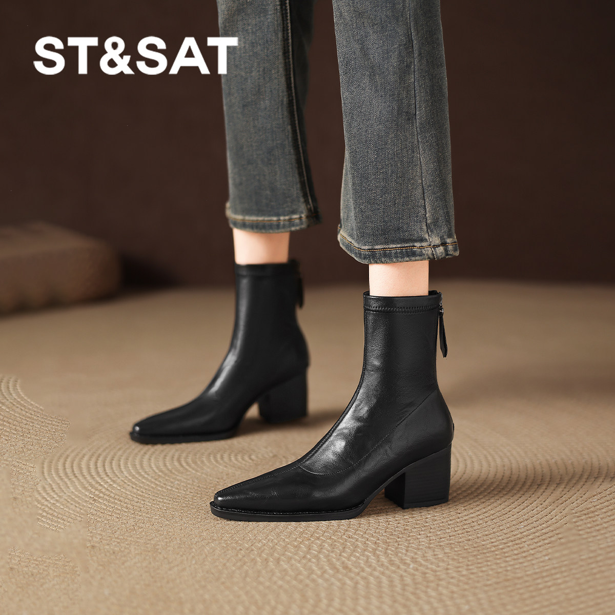 星期六黑色增高跟小短靴2025新款女款马丁女靴子皮靴秋冬季巨好看