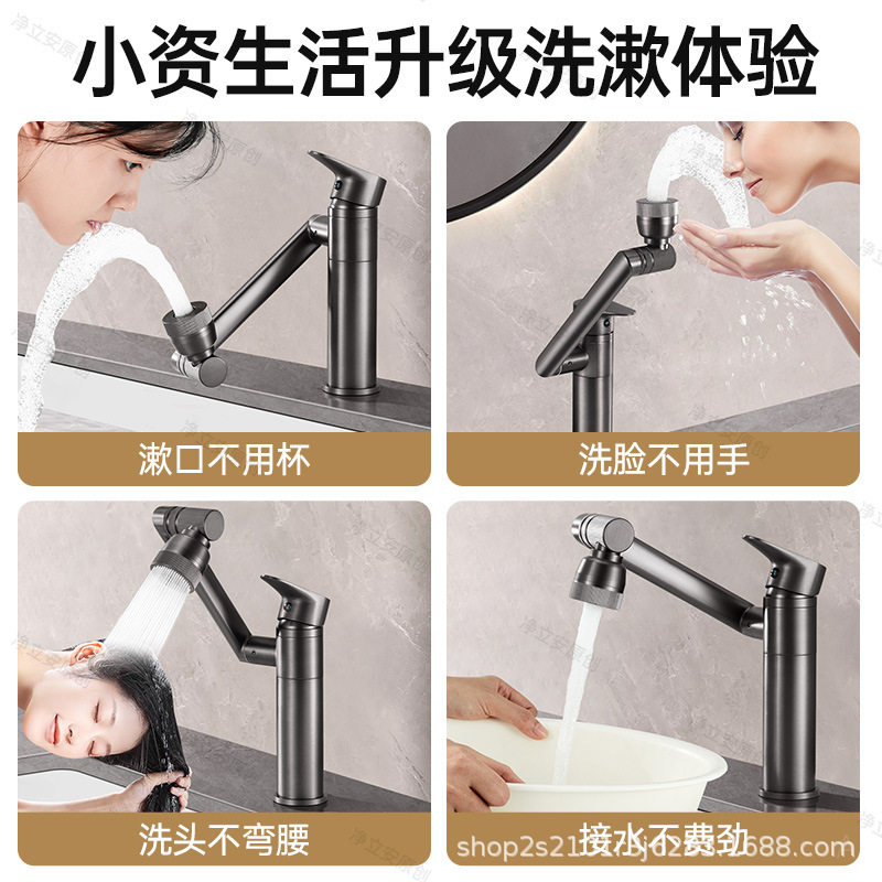 全铜机械臂万向水龙头洗脸盆冷热洗手池卫生间面盆旋转招财猫龙头