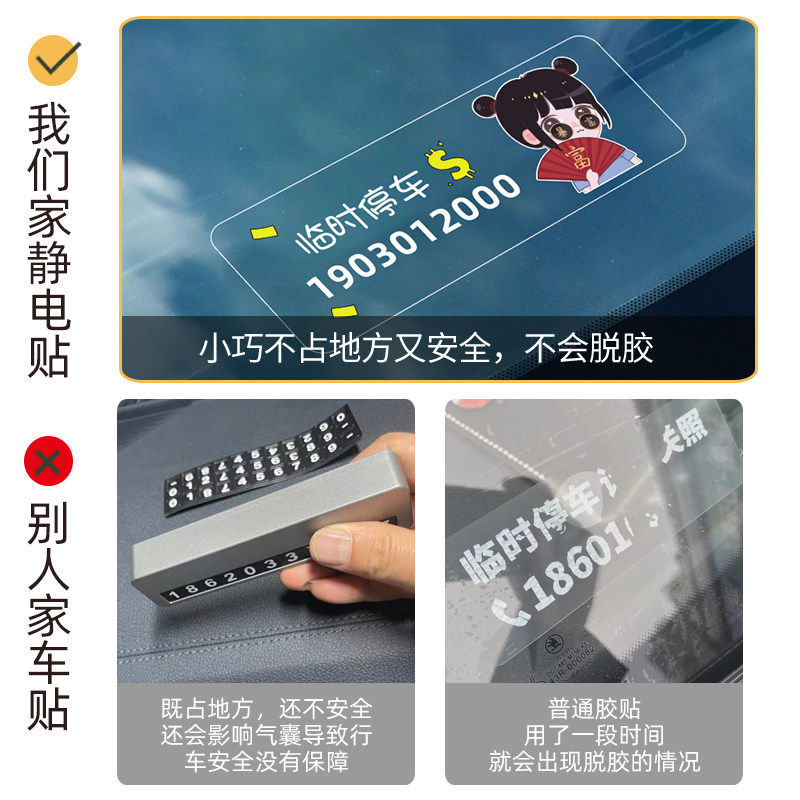 挪车电话牌车用透明无痕静电贴汽车号码牌车载临时停车号码移车牌