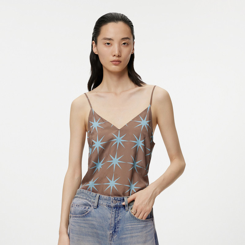 JNBY/江南布衣折扣春夏吊带背心蚕丝V领星星印花休闲简约女