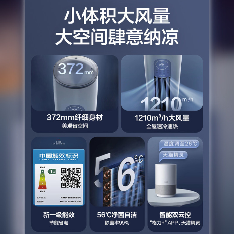 格力官方一级能效变频冷暖3匹立式客厅家用圆柱形空调柜机云逸II