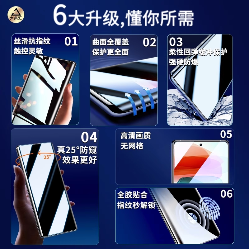 [超龙晶秒贴]第一卫适用小米17promax钢化膜15手机膜14红米k90/80/13/civi4/5pro防窥note12至尊版s新款ultra