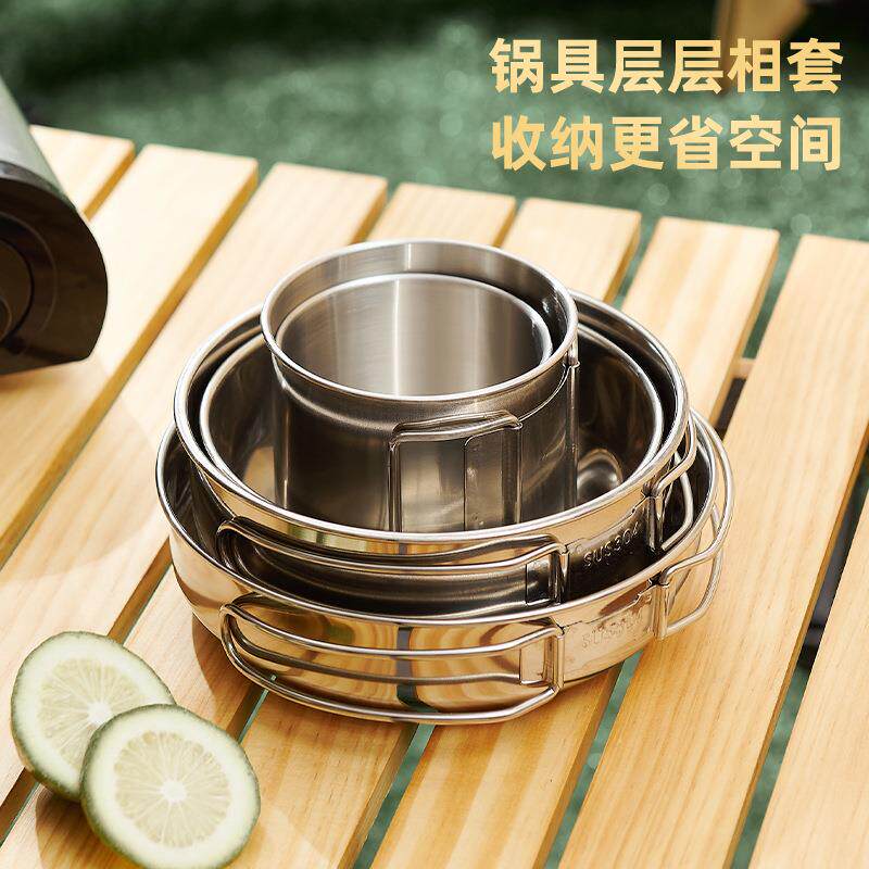 户外304露营套锅不锈钢锅具装备野营野炊用品便携式炊具厨具套装