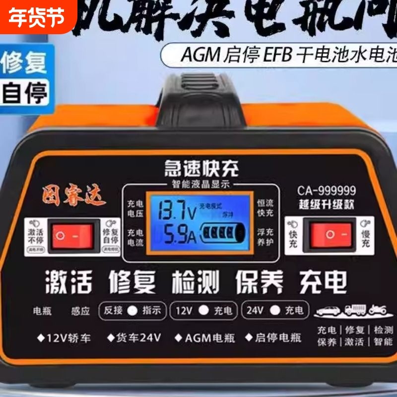 汽车电瓶充电器12v24v伏摩托车充电全智能自动修复型蓄电池充电机