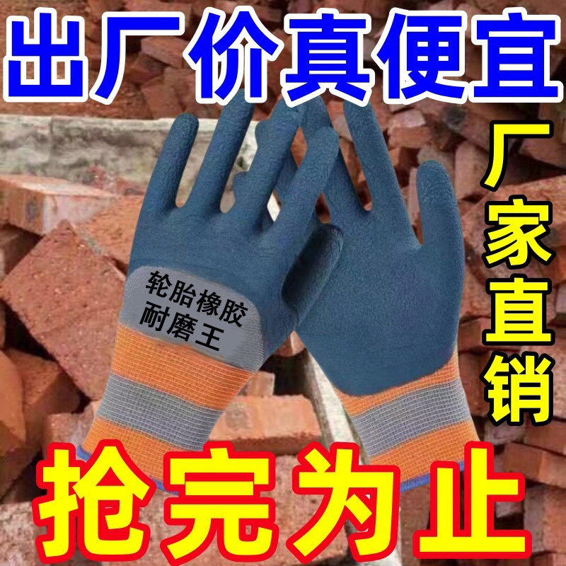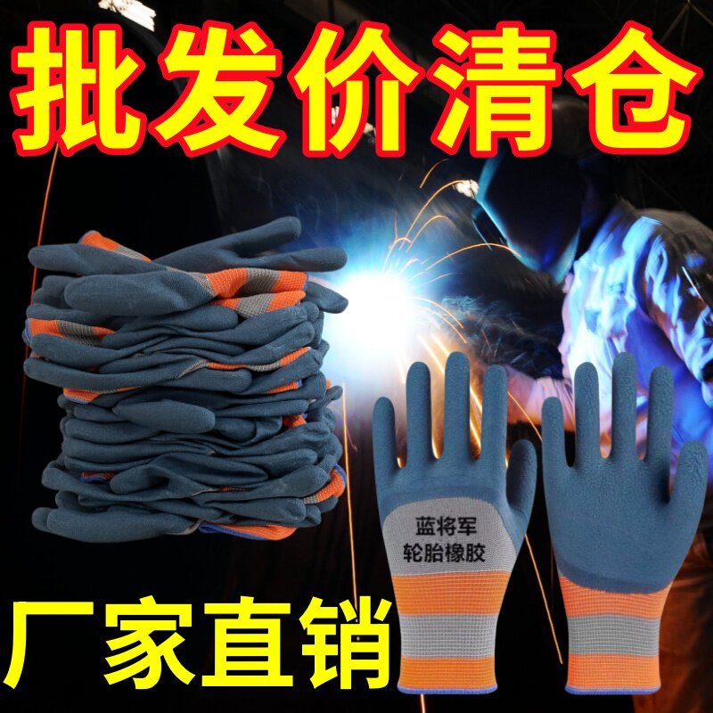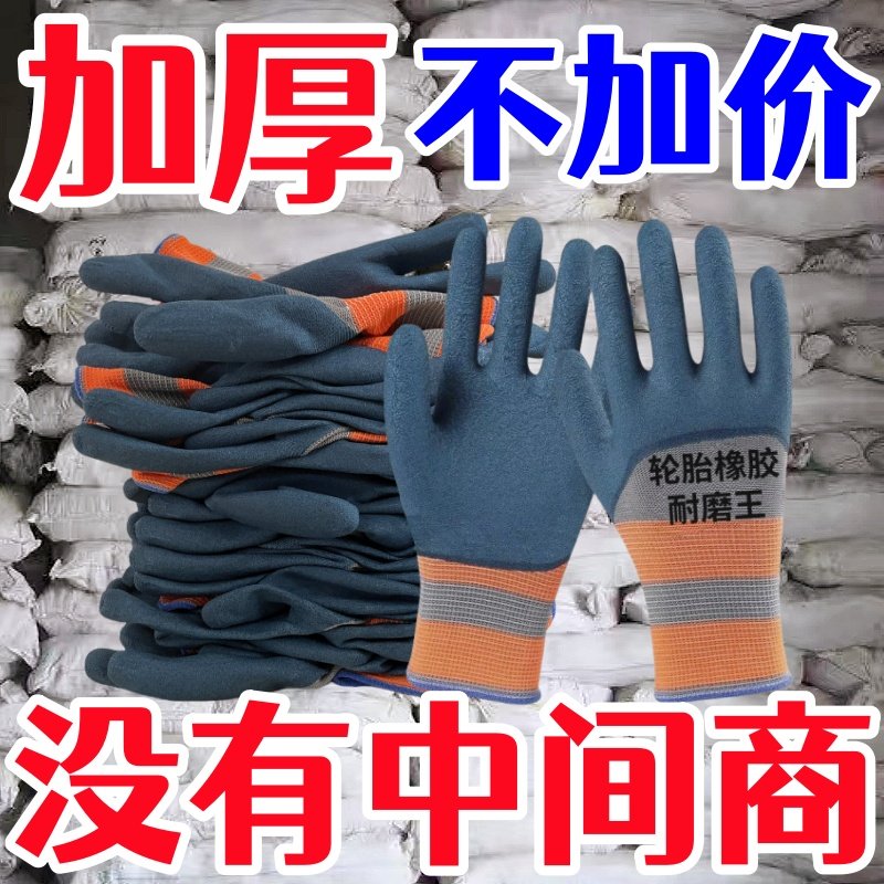 手套劳保手套乳胶橡胶手套工作劳保防滑防水耐磨胶皮手套工地干活