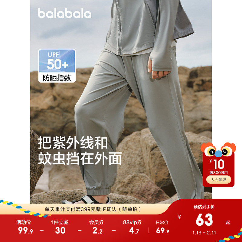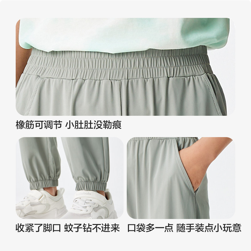 巴拉巴拉女童防晒裤子儿童夏装新款运动裤男童凉感透气纯色滑滑裤