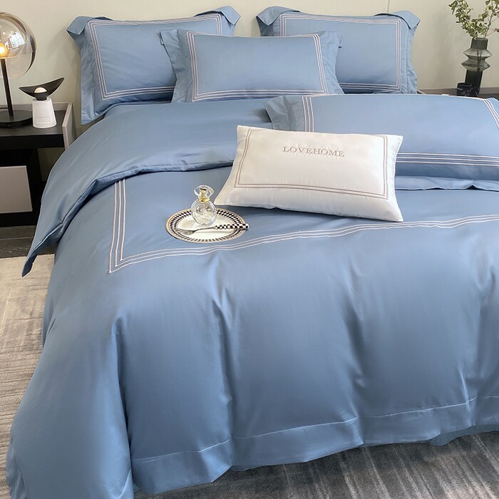 A类100支新疆长绒棉纯棉四件套全棉简约床品套件刺绣舒适床单被套