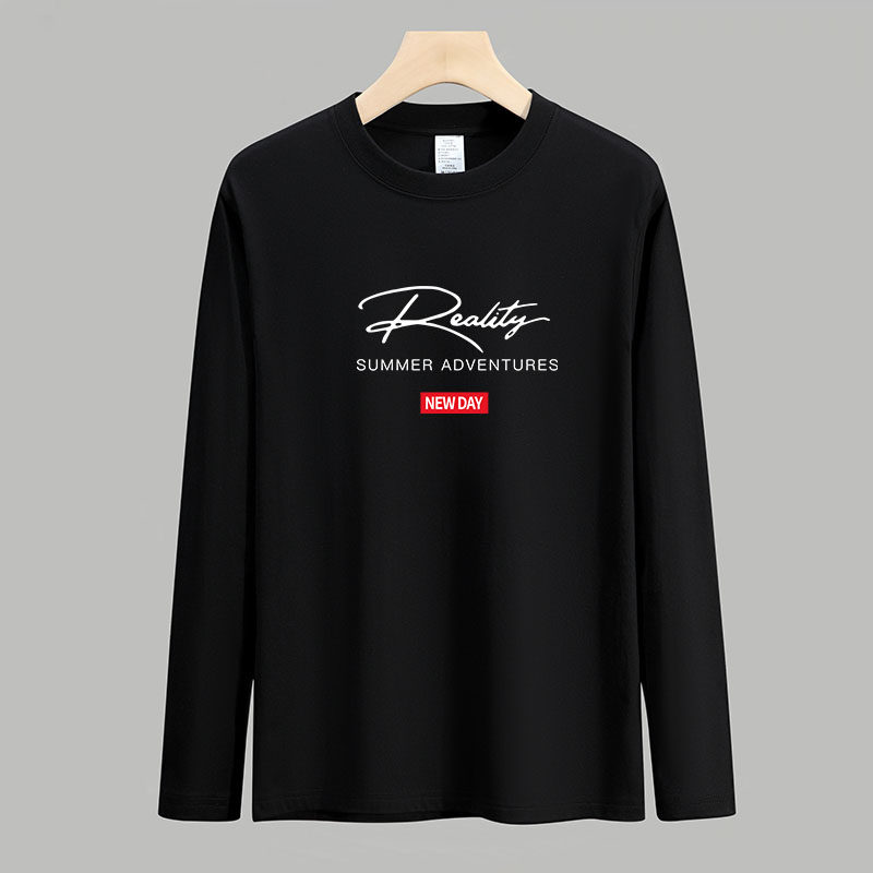 春秋新款长袖t恤男圆领纯棉薄款宽松情侣百搭大码长袖休闲打底衫