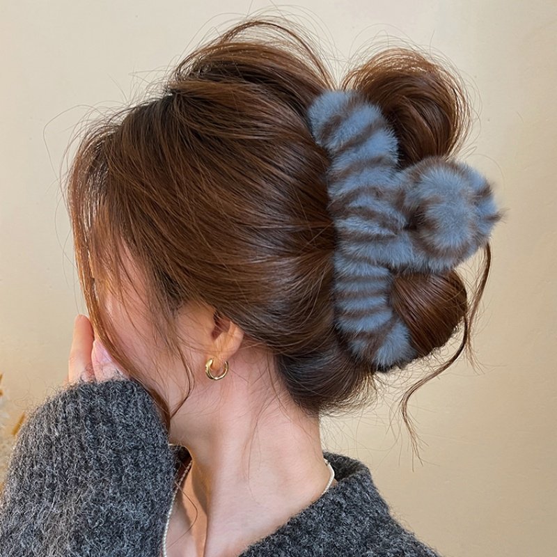 秋冬高级感毛绒豹纹抓夹女大号后脑勺毛茸茸鲨鱼夹盘发发夹子头饰