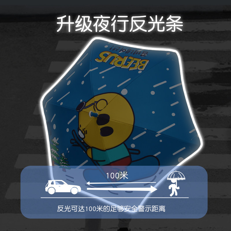 儿童雨伞圆角男童安全晴雨伞小孩子遮阳直杆伞防砸防戳黑胶反光伞