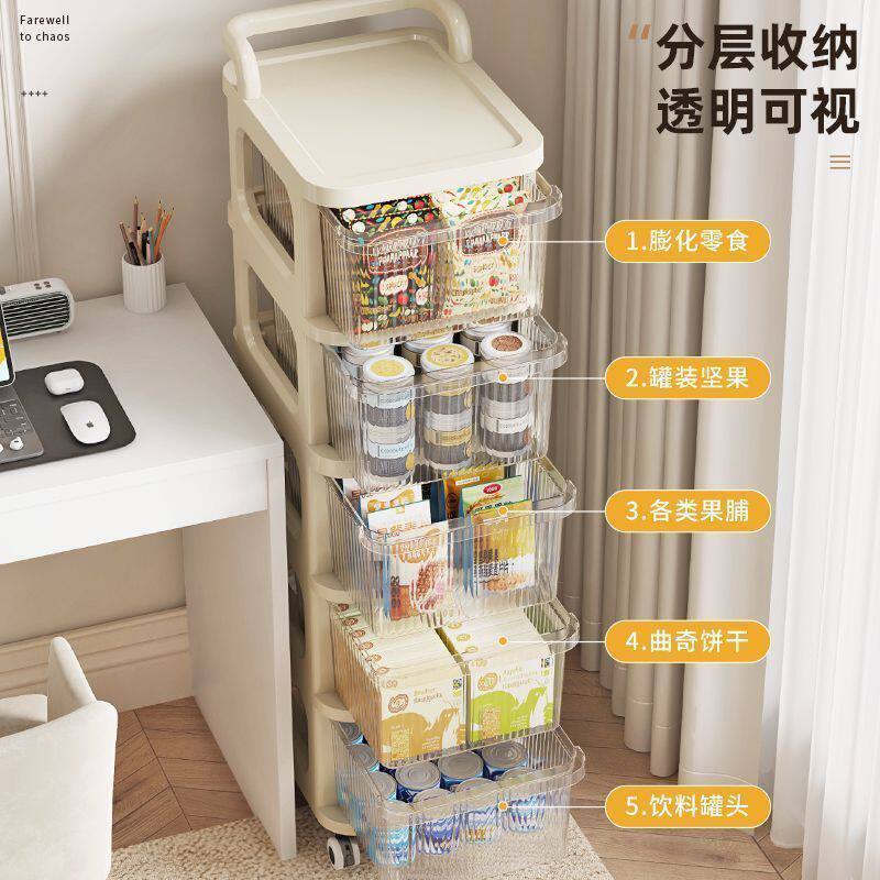 多层落地置物架带抽屉式收纳柜客厅可移动零食玩具储物收纳小推车