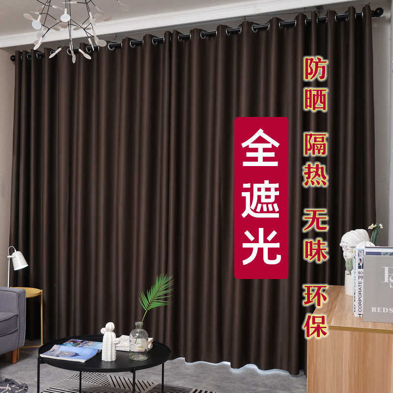 全遮光窗帘成品遮光布卧室客厅飘窗帘北欧简约防晒加厚纯色遮阳布