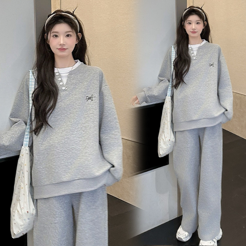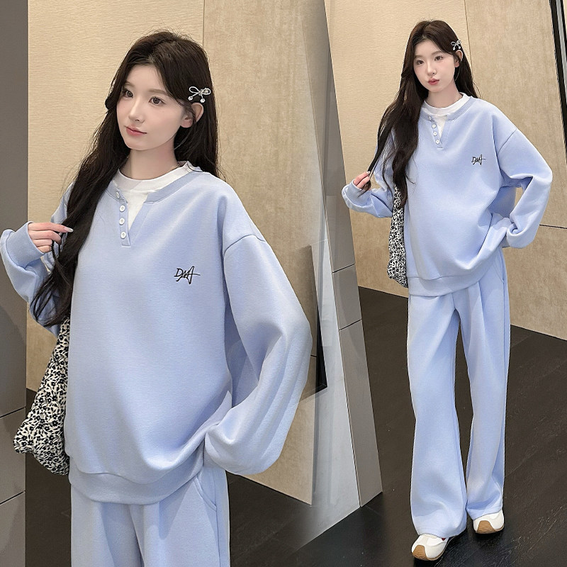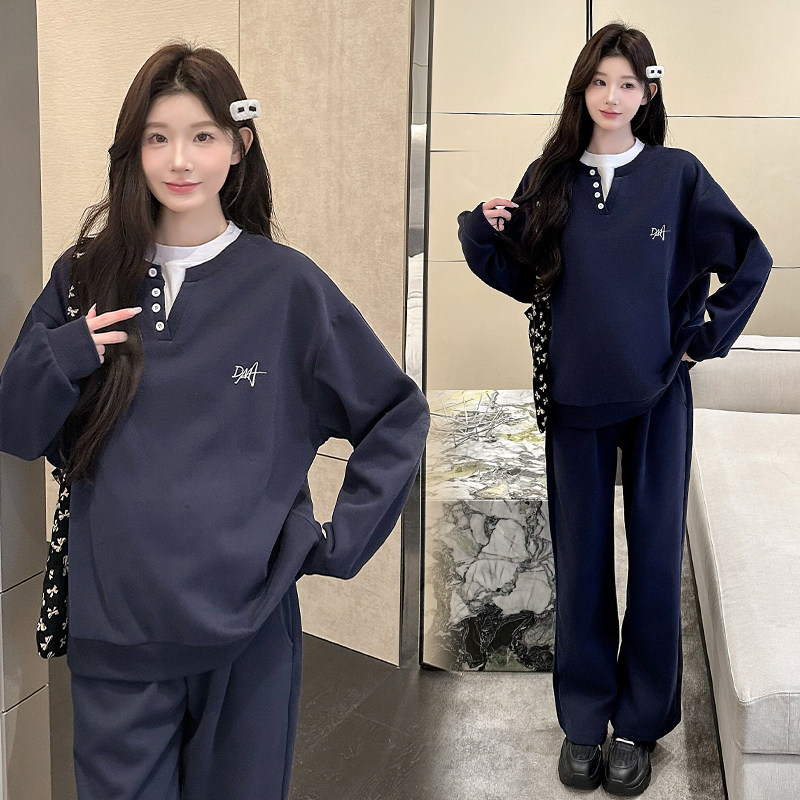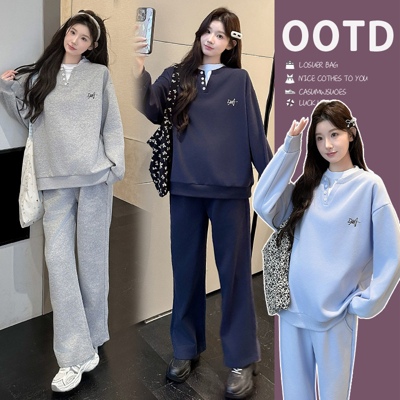 婧麒孕妇装冬装高级假两件孕期时尚卫衣上衣裤子新款洋气孕妇套装