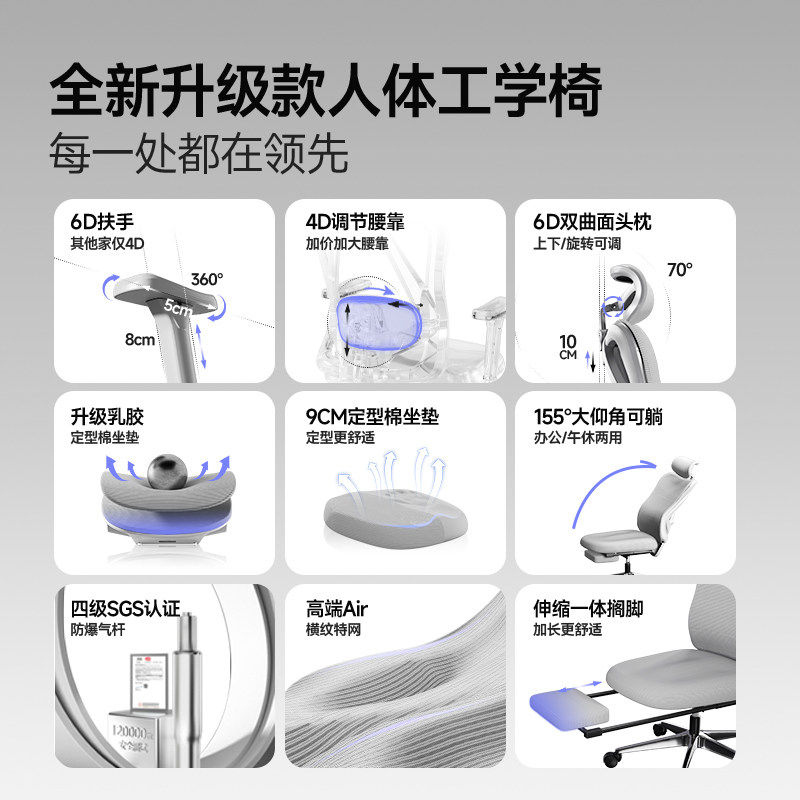 人体工学椅子护腰电脑椅办公椅座椅升降电竞舒适家用扶手可躺可调