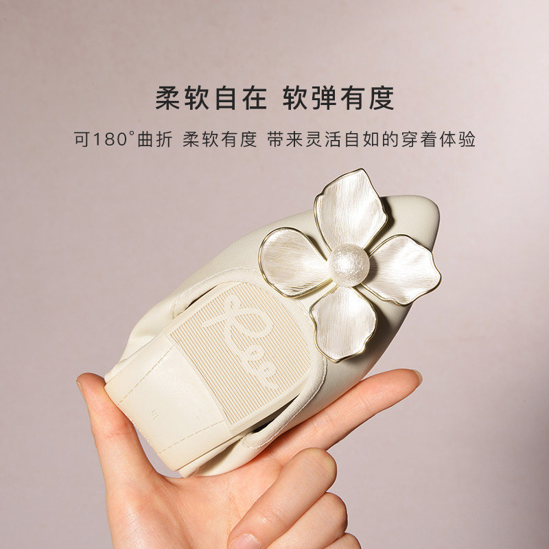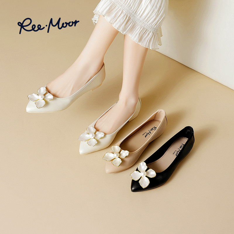 REEMOOR尖头单鞋法式舒适百搭低跟平底软皮浅口小香风睿慕女鞋子