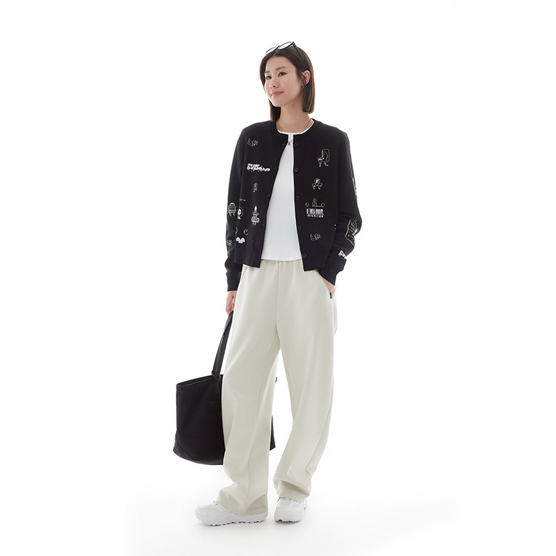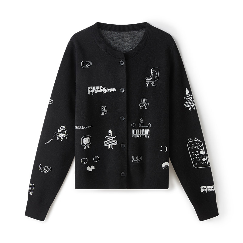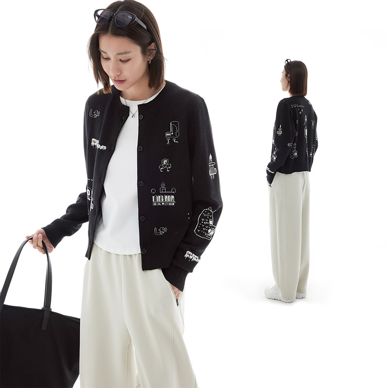 云上生活【涂鸦小开衫】趣味刺绣绵羊毛针织衫短外套2025春秋上衣
