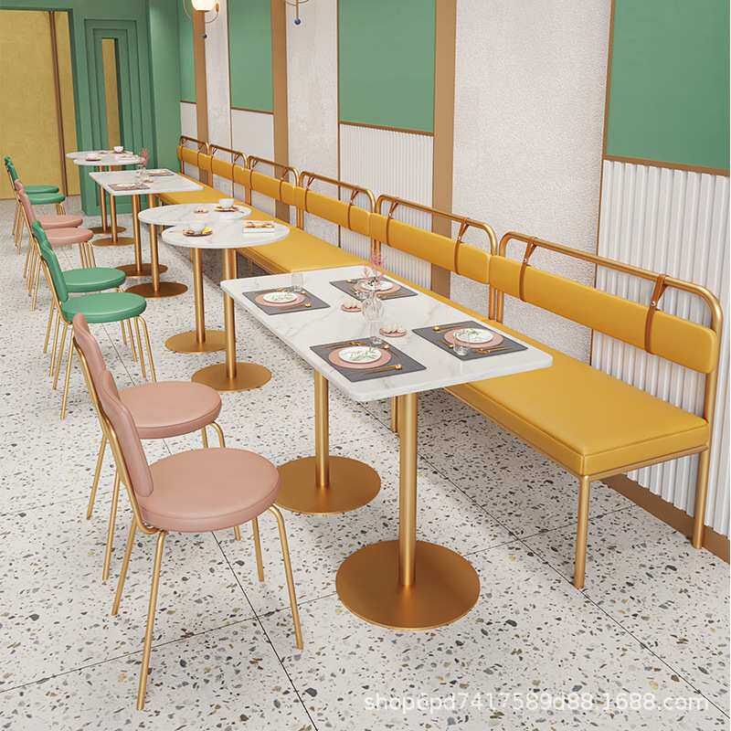 奶茶店桌椅咖啡厅小吃店西餐厅组合餐厅卡座沙发商用家具轻奢铁艺