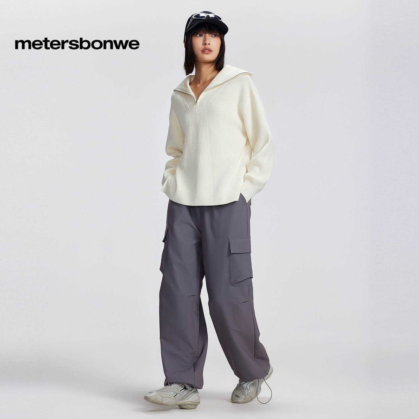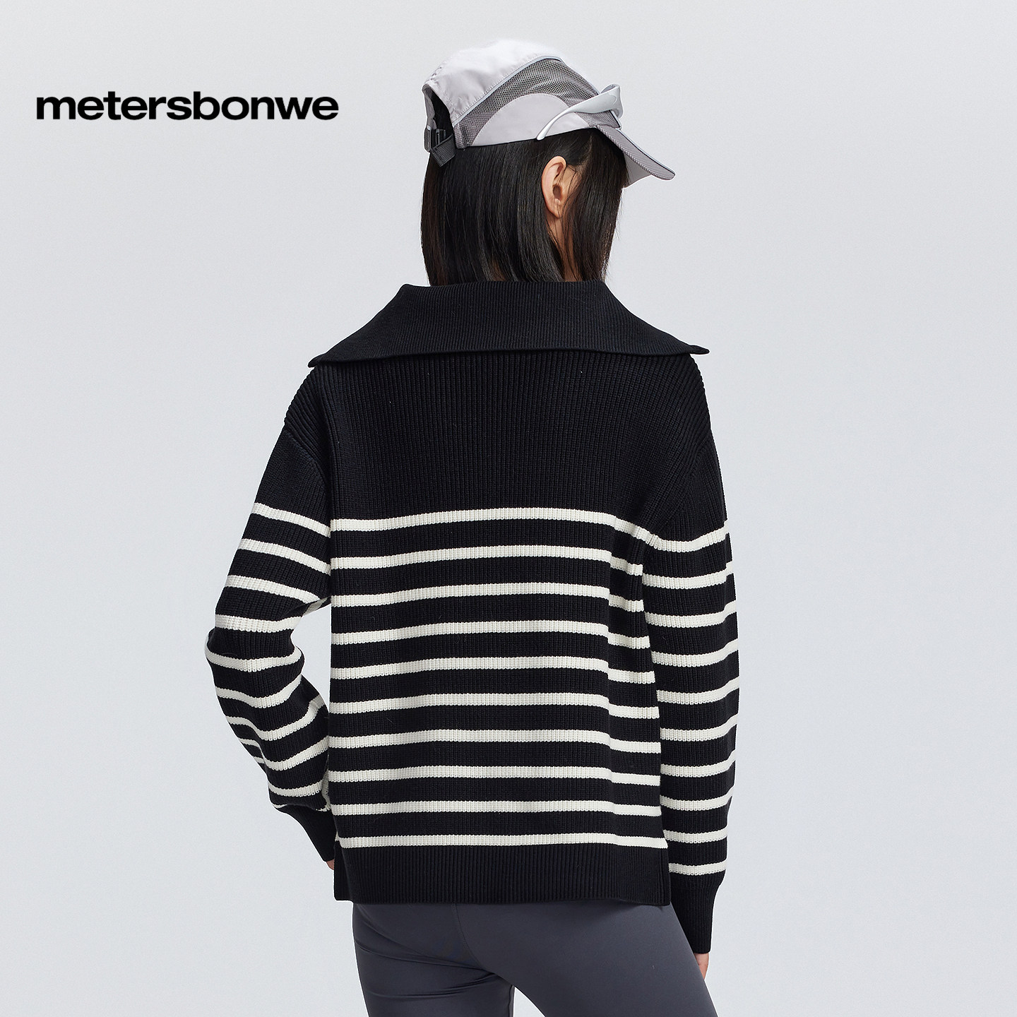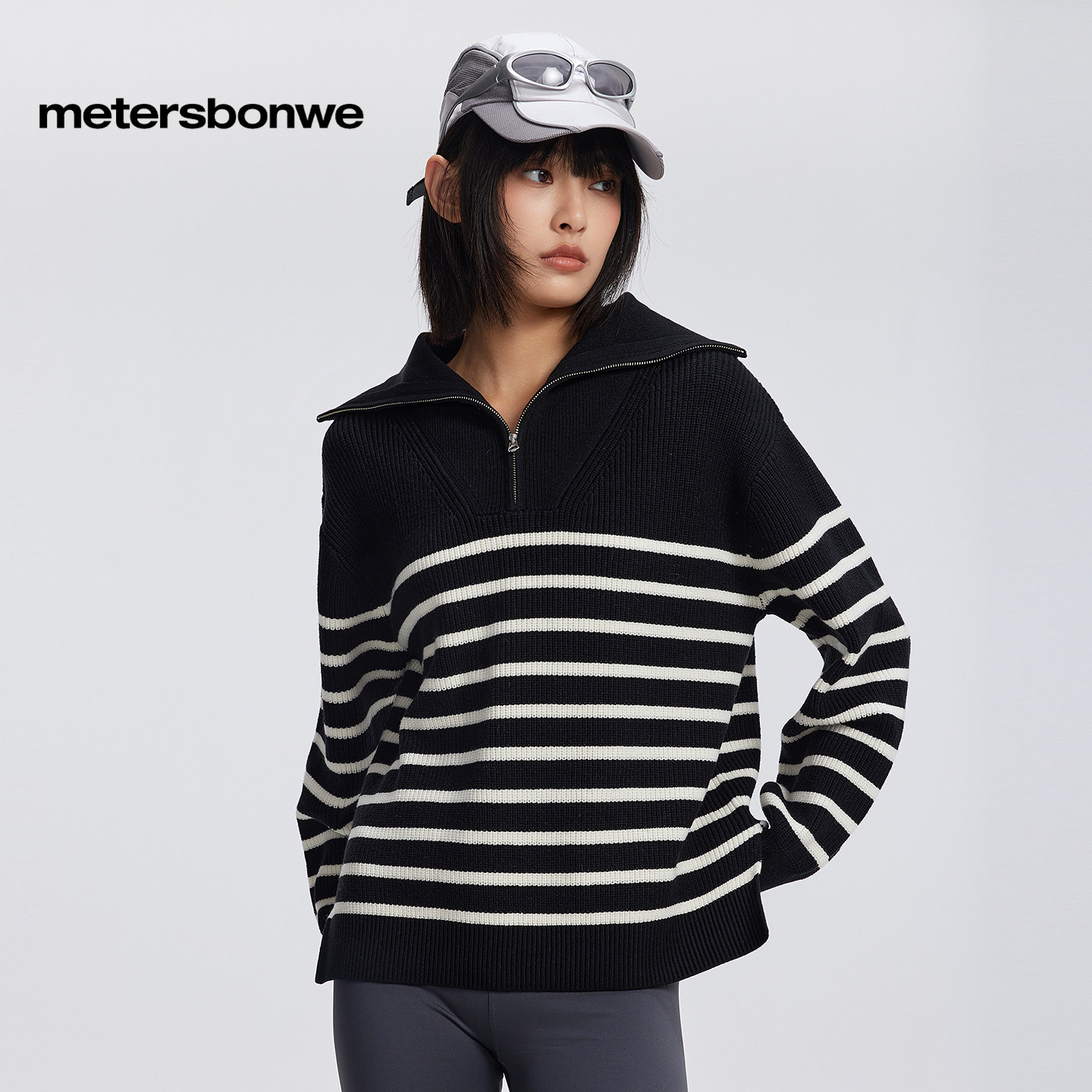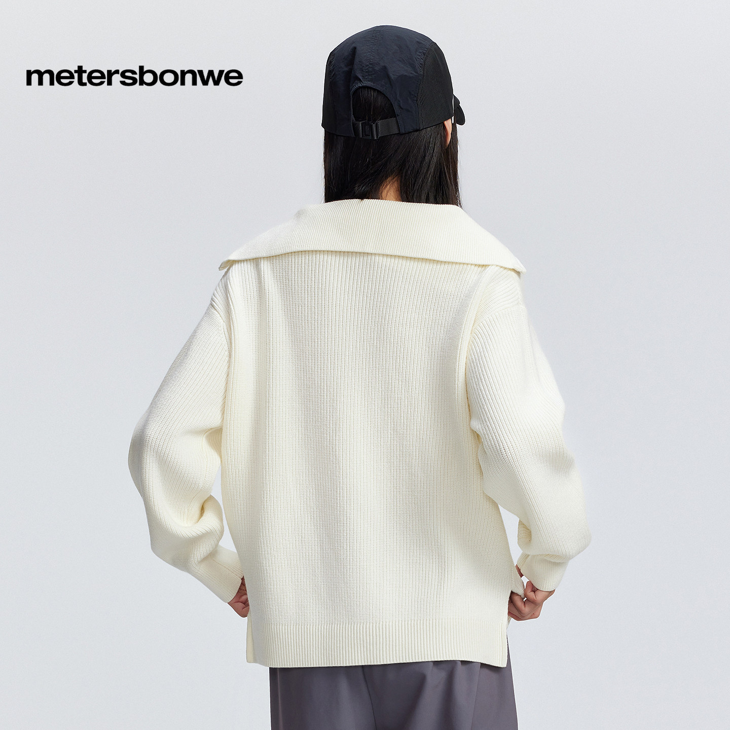 美特斯邦威舒适潮流毛衣女春秋新款时尚通勤气质半开翻领女士上衣