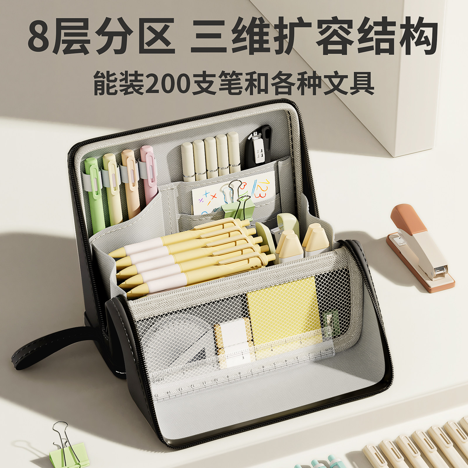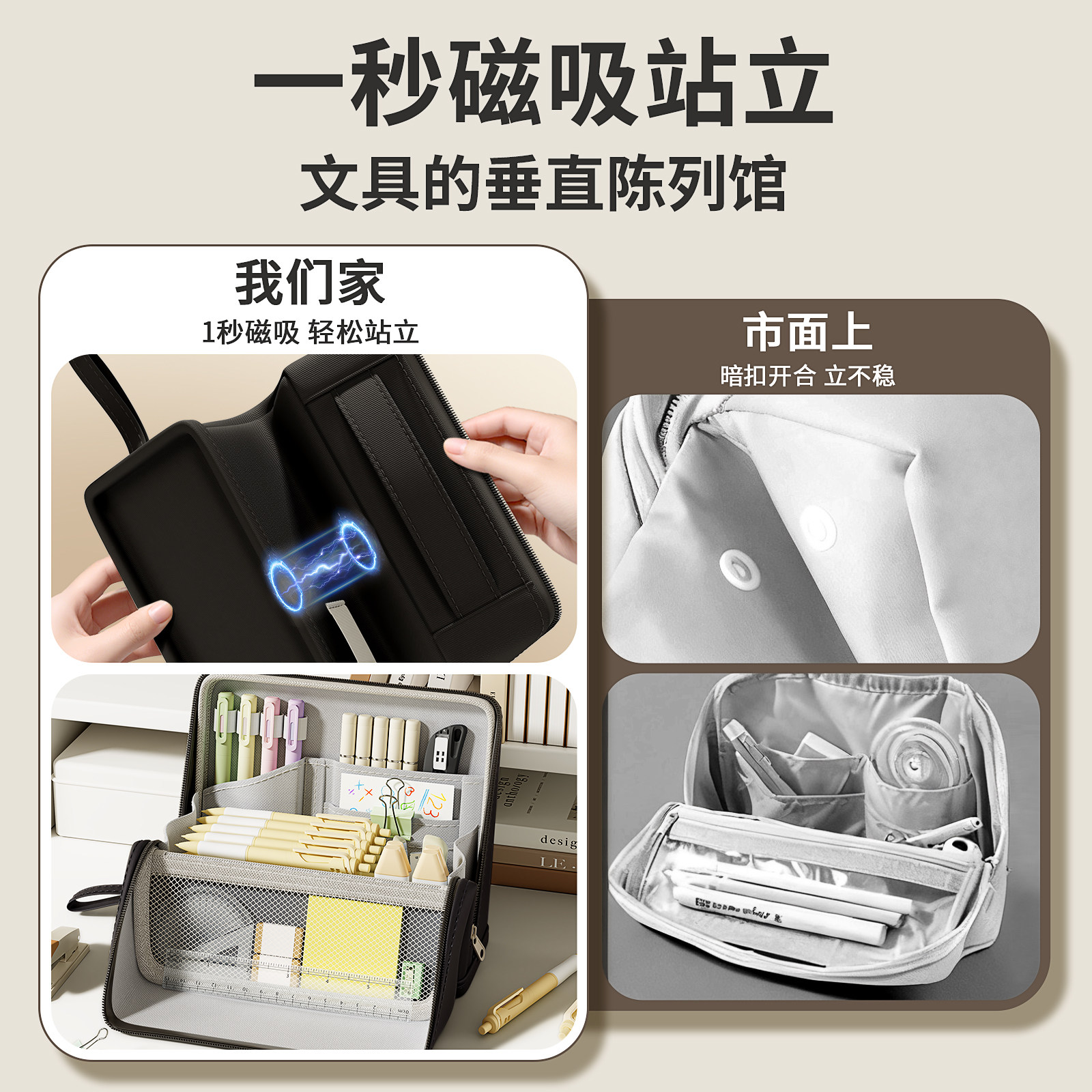 8层磁吸可立式笔袋多层收纳大容量学生文具盒桌面整理袋化妆包超大容量多层分类高颜值女初高中小学生铅笔袋
