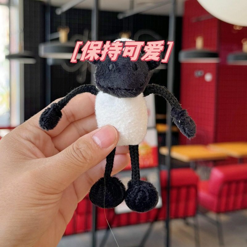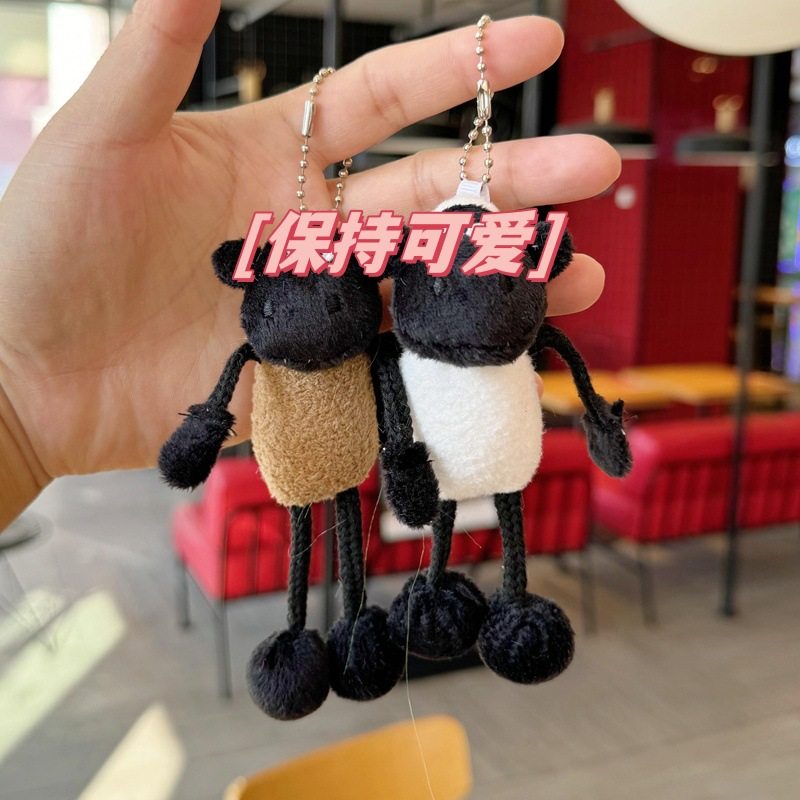 抖音爆款有趣动漫卡通可爱小羊钥匙扣黑白羊挂件毛绒公仔包包挂件