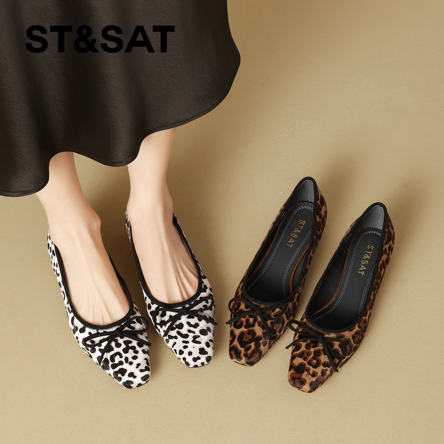 星期六时尚浅口单鞋女2026年春季新款方头粗跟豹纹坡跟舒适一脚蹬
