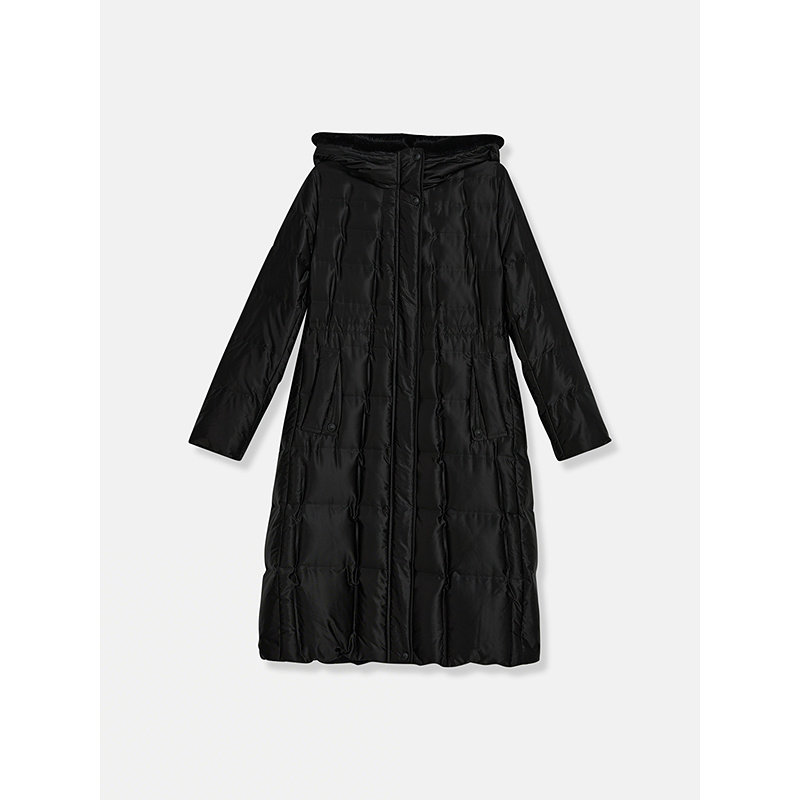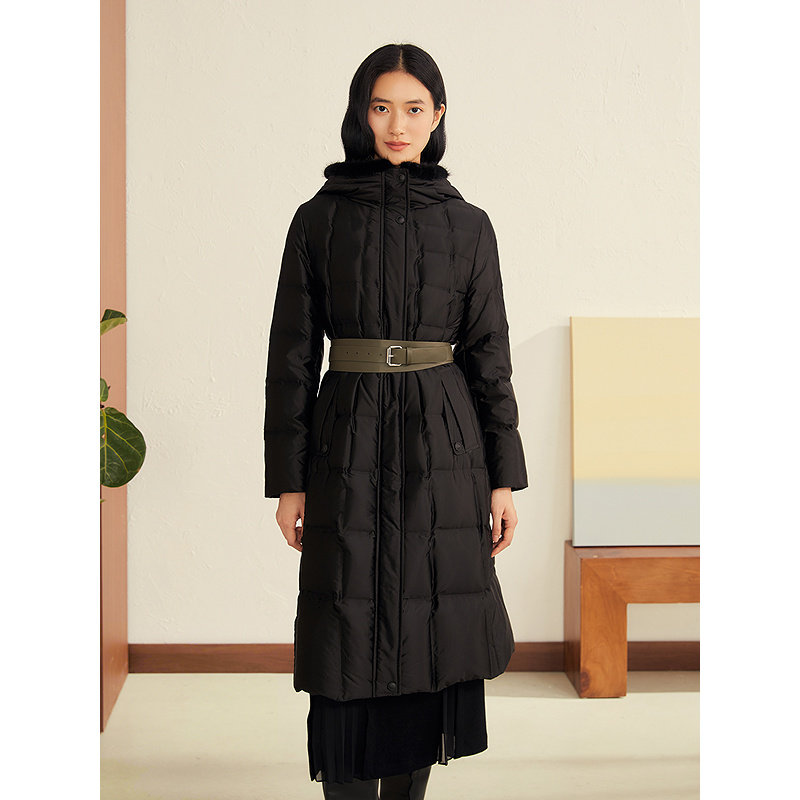 鸭鸭中戏pro羽绒服女冬中长款连帽过膝加厚95绒波兰鸭绒保暖外套J