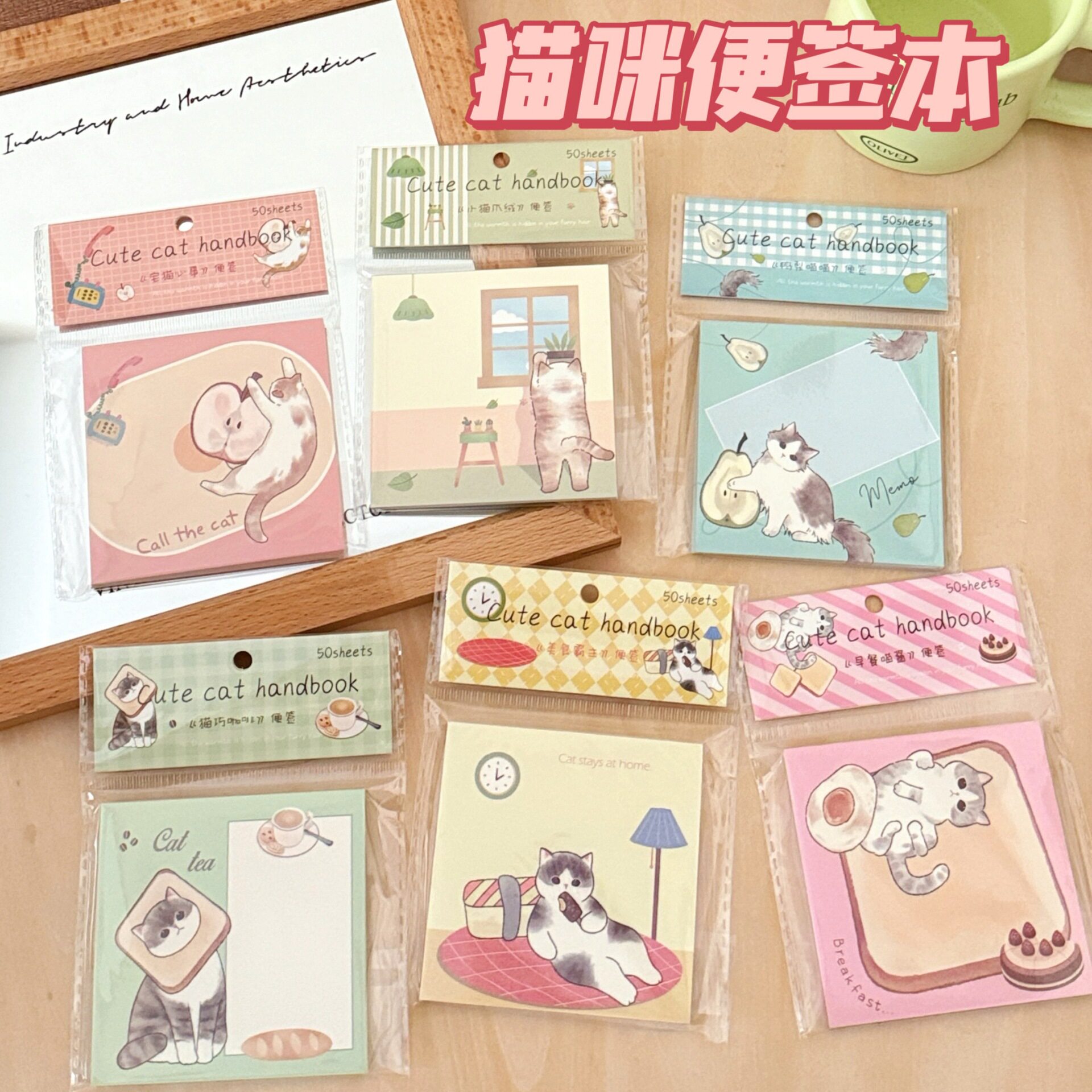 新款萌猫手册系列便签本学生留言记事本少女心可爱卡通猫咪备忘纸