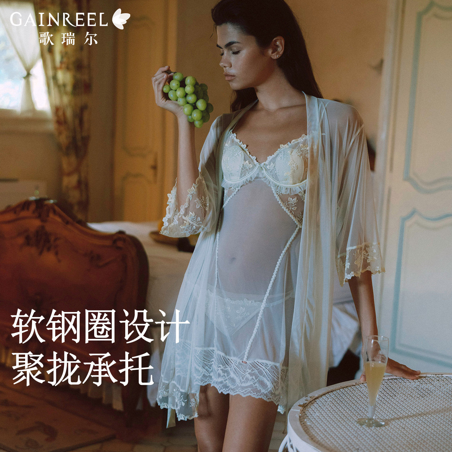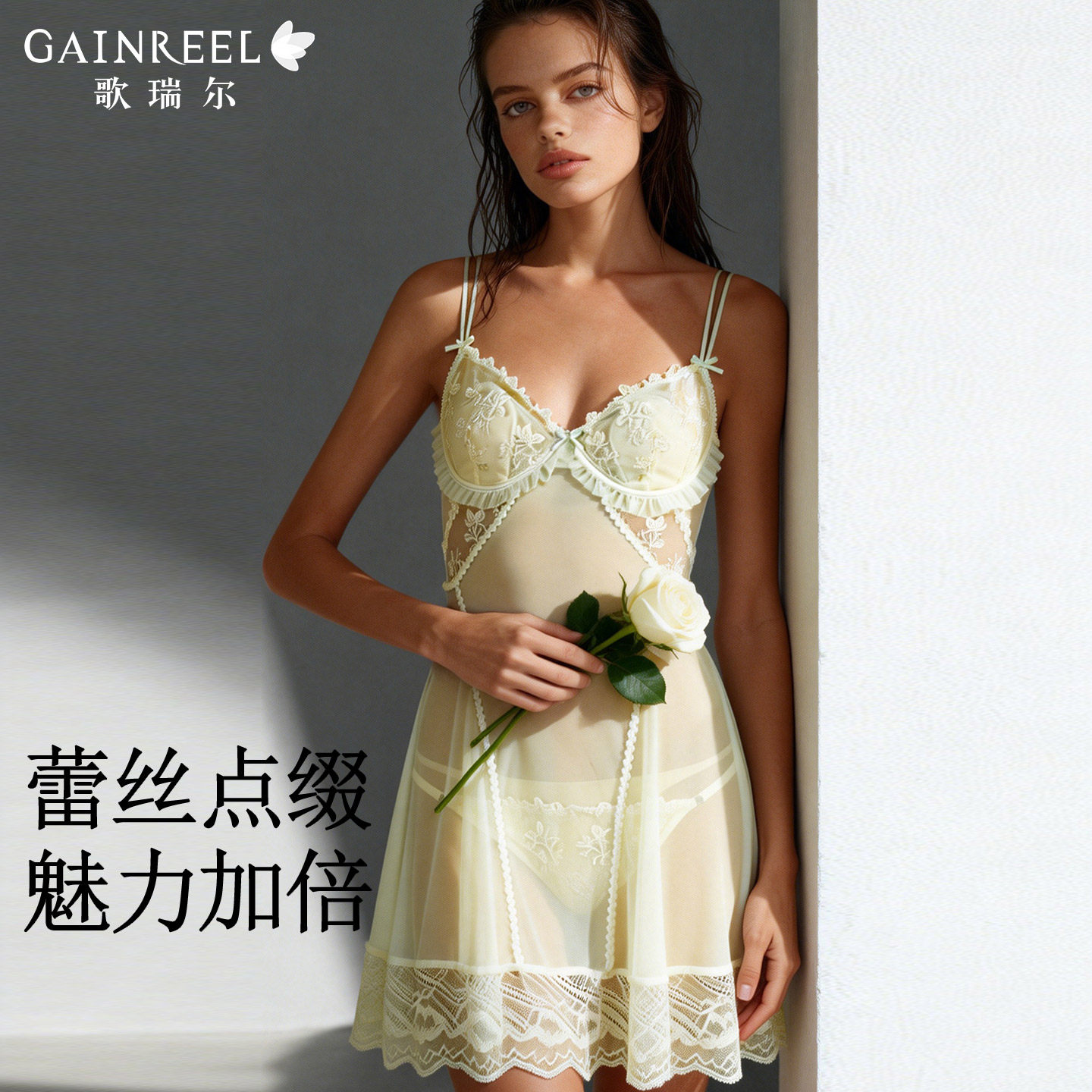 歌瑞尔法式蕾丝性感吊带睡裙女款带胸垫睡衣睡袍家居服2026新款